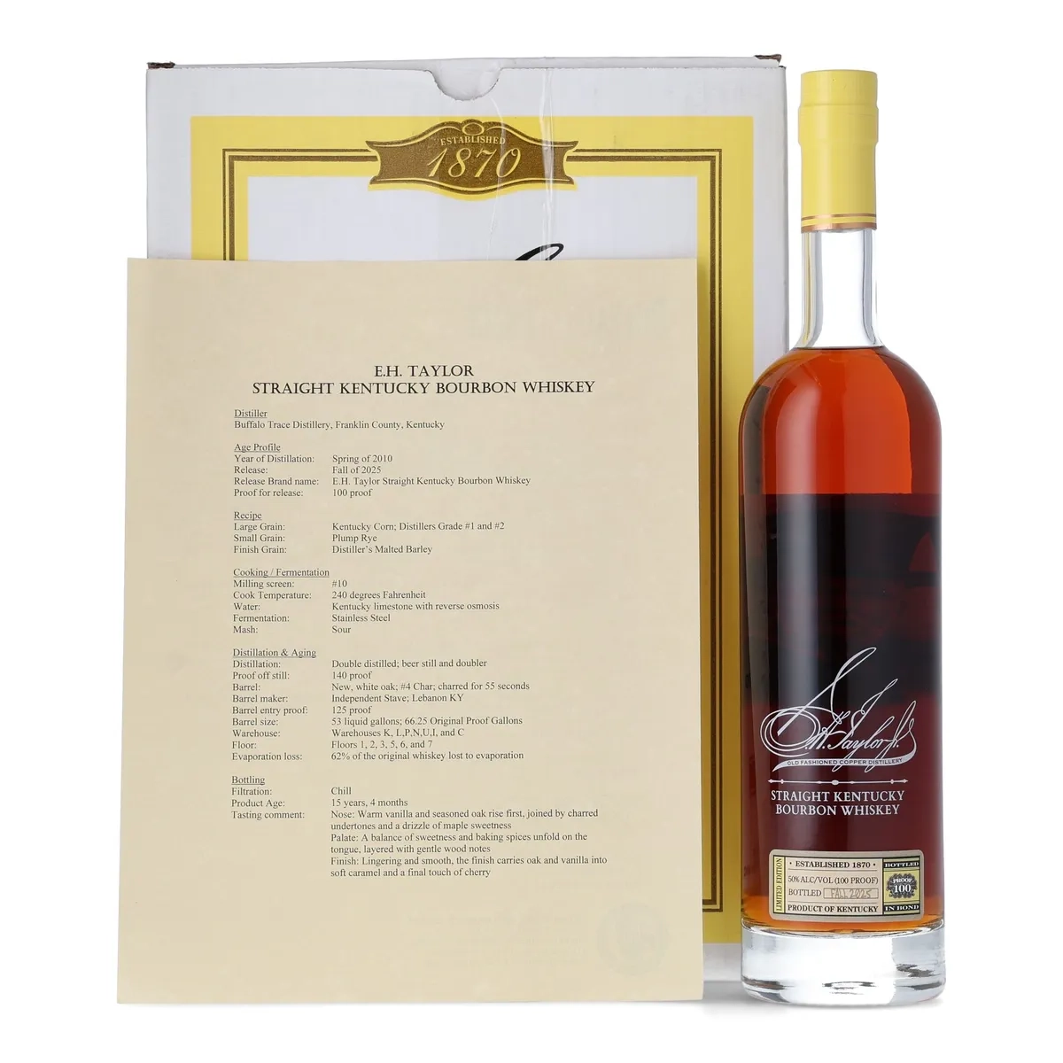 Because this is the first-ever BTAC edition of E.H. Taylor, collectors view this bottle as a foundational piece for future value growth. Additionally, its Bottled-In-Bond format delivers the classic Taylor profile with enhanced rarity and historical significance.